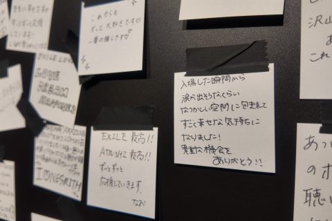 また、会場内に設置したメッセージウォールでは、ファン一人ひとりがEXILEへの想いを自由に残すことができ、展示を見る側から、物語に参加する側へと立場が移行する体験を創出しました。