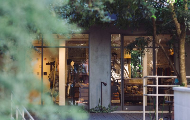 社内でも初めての子ども服の店舗はどういった場所が好ましいのか、出店場所の選定はリサーチから始まりました。 市街地から徒歩圏内であること、加えて都会の喧騒から離れられる静かで緑が多い場所を探し、条件にぴったりの今の場所にたどり着きました。