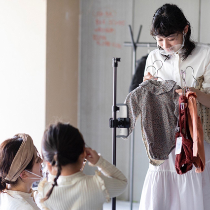 今、力を入れているのが「ライブコマース」 オンラインを通して商品を紹介。リアルタイムで顧客と対話することでエンゲージメントを高め、コアファンの創出へ繋げています。 最近ではインフルエンサーとのコラボや、小鹿田焼等歴史ある器の紹介等も行っており、子ども服に限定しない「アート」の発信源としても活動の幅を広げています。